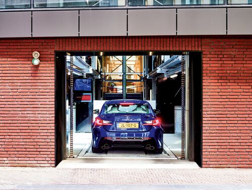 Mitten in der City von Den Haag wurde ein historisches Bankgebäude zum modernen Firmensitz umgebaut. Hochwertige Fahrzeuge parken sicher und komfortabel im vollautomatischen Parksafe 583 von WÖHR, der sich gekonnt in das bestehende Gebäudeensemble einfügt. Auf neun oberirdischen Ebenen können bis zu 52 Fahrzeuge auf lediglich ca. 135 m2 Grundfläche vollautomatisch und platzsparend untergebracht werden.