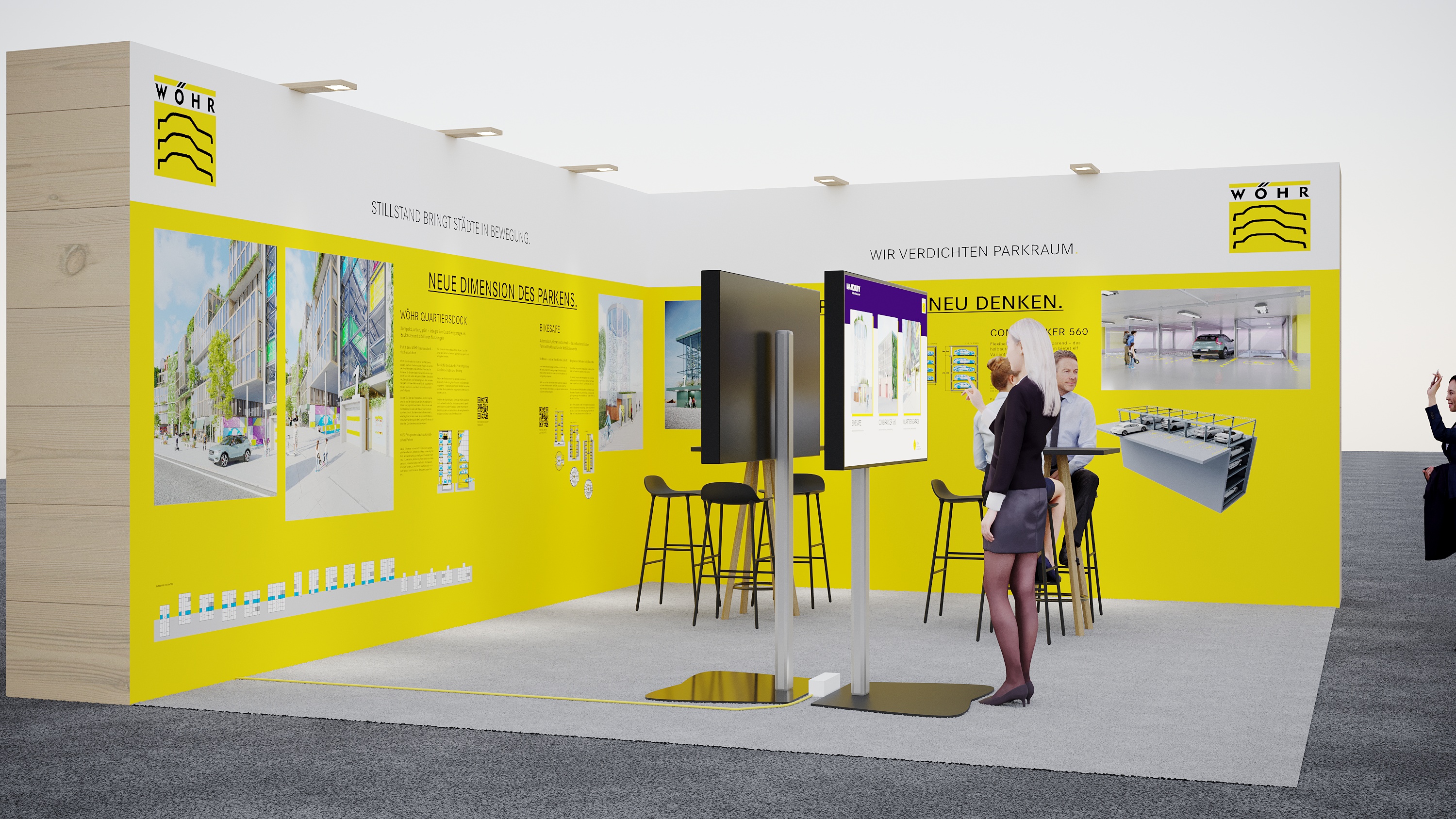 Mehr als 1.000 Aussteller und Redner versammeln sich auf der IAA Mobility, um die Mobilität auf den Weg zur Klimaneutralität zu bringen. WÖHR Autoparksysteme stellt zwei Neuheiten vor, die Antworten auf die Frage haben, wie wir Fahrzeuge in unseren Städten so platzsparend und sicher wie möglich abstellen. Denn jedes energieeffiziente oder emissionsfreie Verkehrsmittel ist nur so gut wie die Möglichkeit, es einfach und ressourcenschonend abzustellen. Dieser Anspruch stellt vor allem Metropolen und Ballungszentren vor große Herausforderungen. Abgestellte Fahrzeuge benötigen Platz – eine der kostbarsten und knappsten Ressourcen im urbanen Raum. Aktuell befinden sich von den rund 160 Millionen Stellplätzen, die es nach Schätzungen des ADAC in Deutschland gibt, etwa 70 Prozent am Straßenrand. Wertvolle städtische Fläche, die in Zukunft nach Meinung der Stadtplaner*innen besser für Grün- und Freiflächen genutzt werden sollten.
