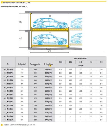 - Hohe Nutzerfreundlichkeit und Parkkomfort. Alle neuen Combilifte sind extrem flexibel, da wir alle 5 cm eine neue Höhe schaffen können, um Fahrzeuge einer Höhe von 150 cm bis 220 cm zu parken.