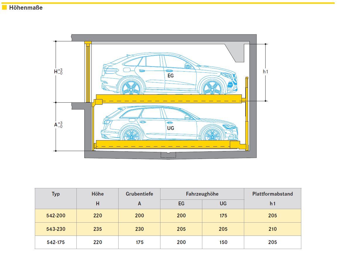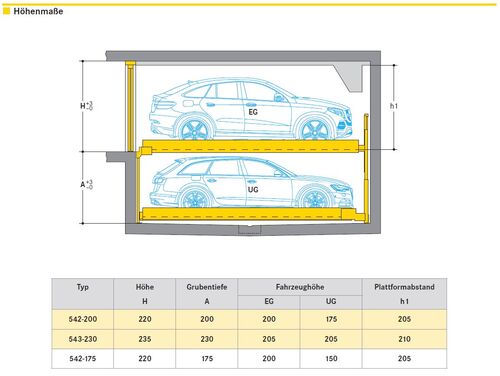 - Erlaubt bei geringer Einbauhöhe von nur 220 cm für das Parken von SUVs auf den oberen Stellplätzen