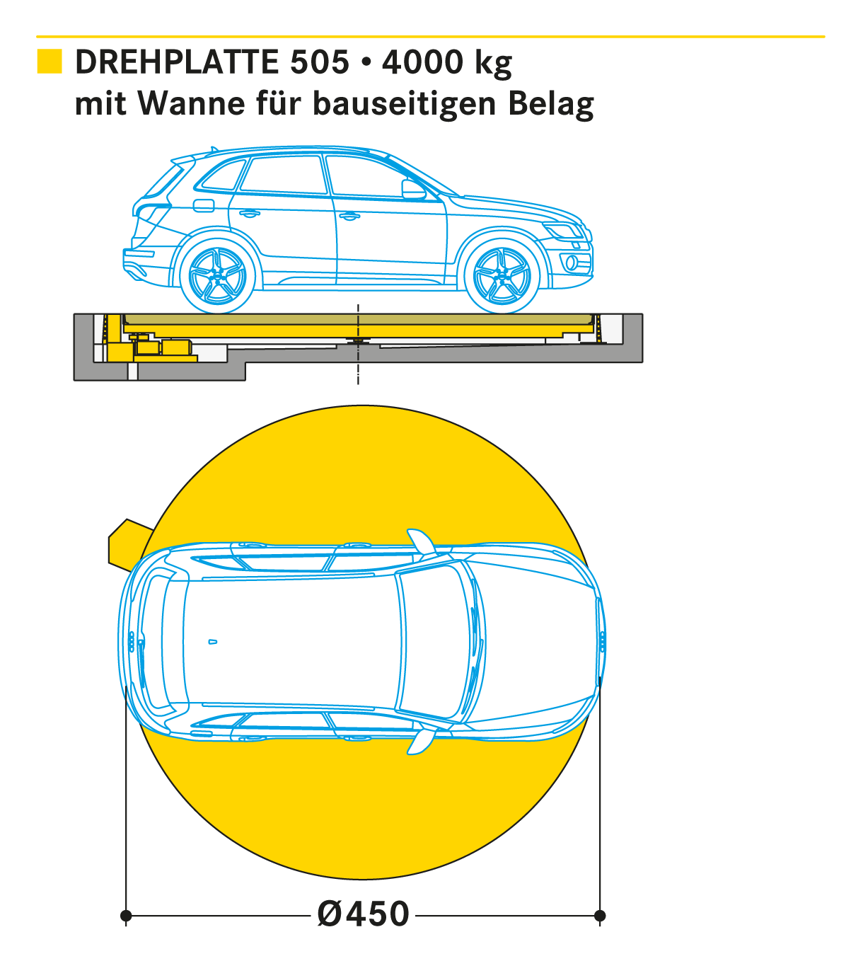 Die Drehplatte 505: bei engen und begrenzten Aus- und Zufahrten ist Drehen die ideale Lösung.