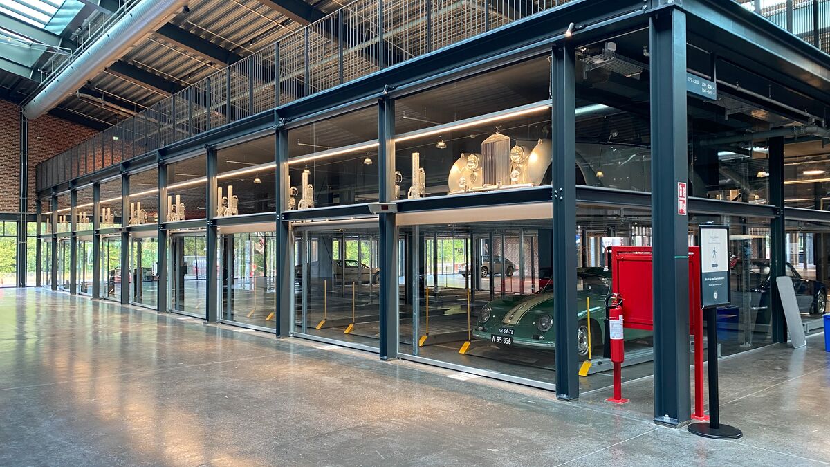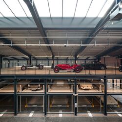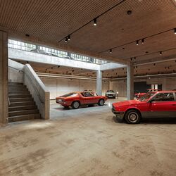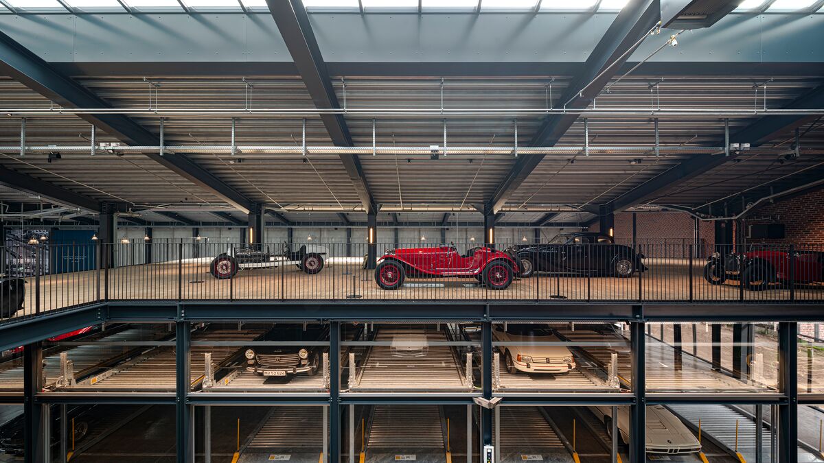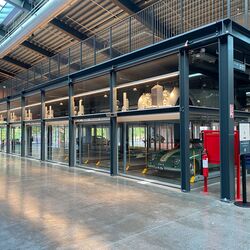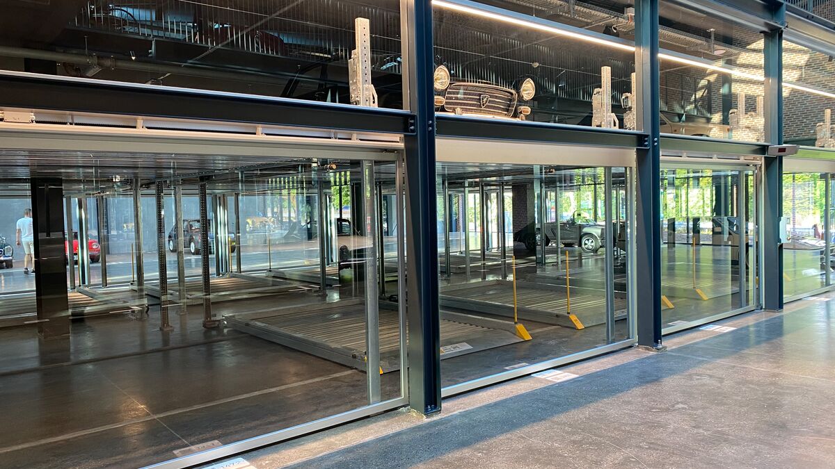Im Autohotel des Gebäudes befinden sich die halbautomatischen WÖHR Comblifte 552 mit insgesamt 43 Stellplätzen. Edle, historische und seltene Fahrzeuge können in diesen Parksystemen nicht nur sicher geparkt, sondern durch die verglasten Tore auch von außen bestaunt werden! Die Verglasung der Combilifte bietet somit Schutz für die Fahrzeuge und sorgt gleichzeitig für einen echten WOW-Effekt im Museum!
