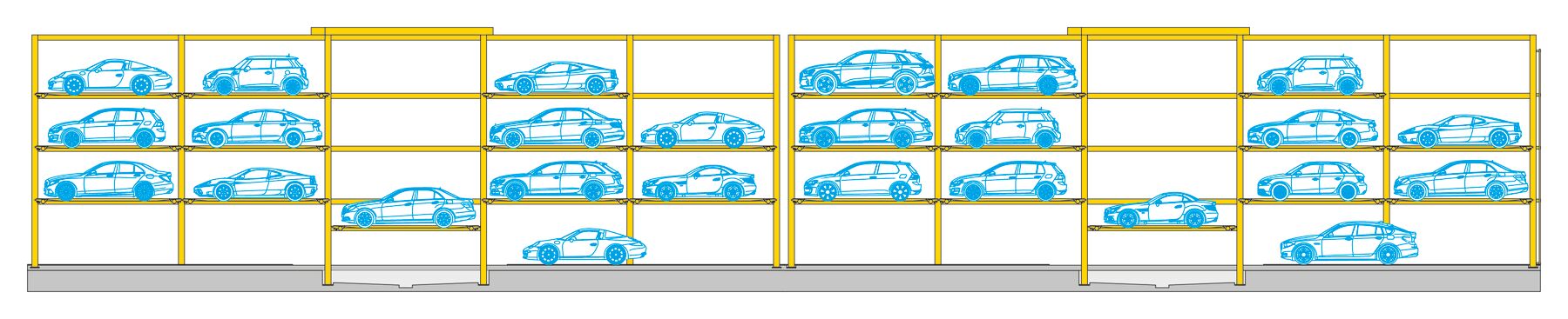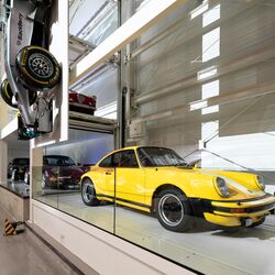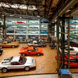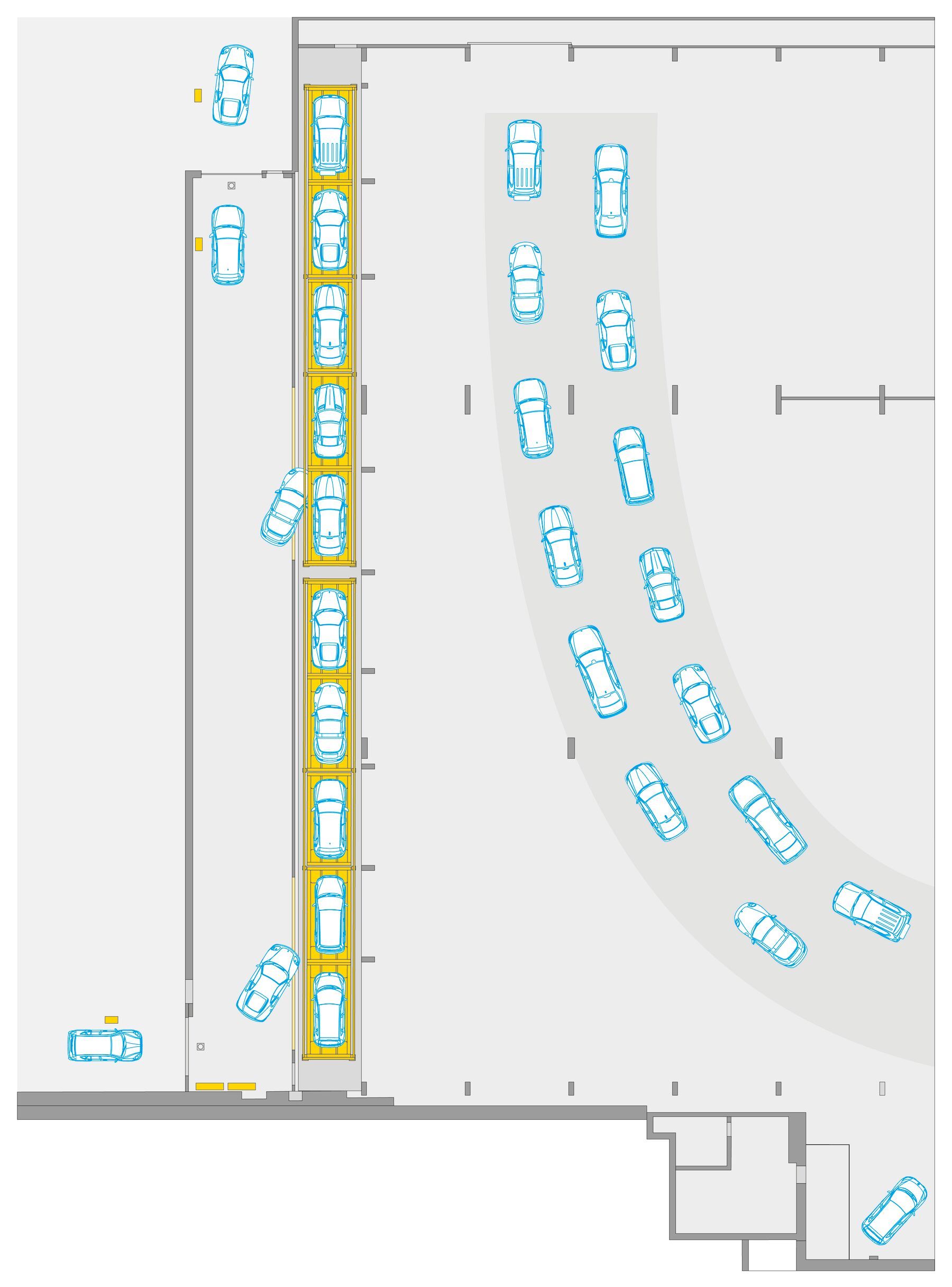 22 Autoträume sind in den beiden Slimparkern 557 auf einem ganz besonderen Parkplatz untergebracht. Diese Fahrzeuge werden im vollautomatischen Parksystem an der Museumsfassade auf drei Ebenen gestapelt. Dank der Sonderlackierung in Reinweiß harmoniert das System perfekt mit dem Museumsambiente und präsentiert die Fahrzeuge in ihrer vollen Pracht.