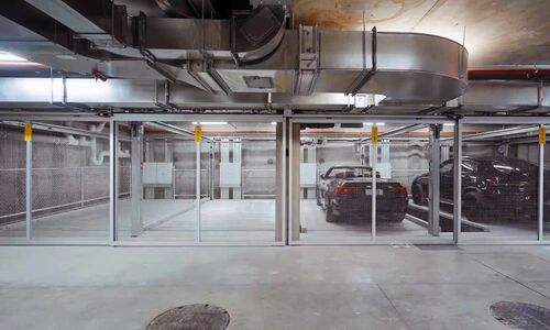 Ein besonderes Highlight ist der WÖHR Combiparker 560, der 50 klimatisierte Glasboxen für Sammlerfahrzeuge bereitstellt – rund um die Uhr zugänglich und perfekt in das architektonische Konzept eingebunden. Der Combiparker 560 zeigt auf drei Ebenen eine beeindruckende Übersicht über die verschiedenen Fahrzeuge, die durch eine besondere Beleuchtung der Boxen nochmals gesondert hervorgehoben werden. Alle Stellplätze wurden zudem mit E-Ladesäulen ergänzt, um das Laden der Elektrofahrzeuge auch in der Glasbox zu ermöglichen.