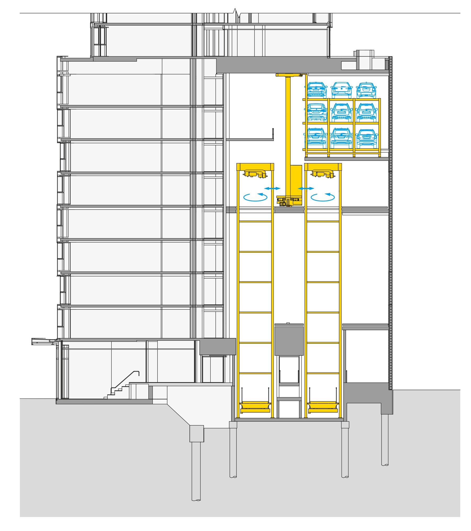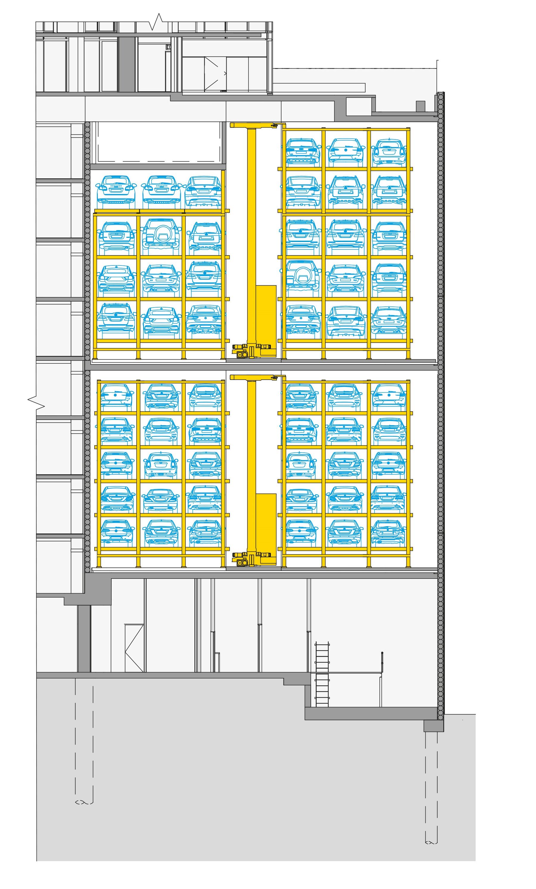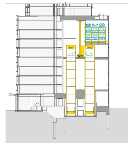 Melbourne, Shadow Play: Hochregal für 150 Fahrzeuge im WÖHR Multiparker 740