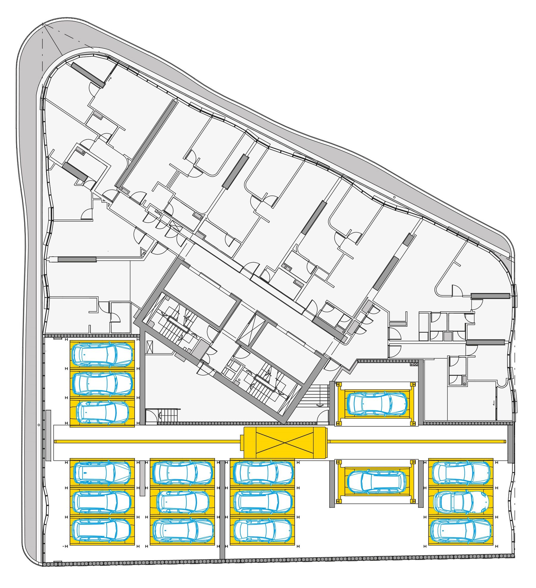 In der zweitgrößten Stadt Australiens hat das ortsbekannte Architekturbüro Elenberg Fraser ein weiteres Zeichen der Hochhaus-Baukunst gesetzt. Mit dem rund 153 m hohen Wolkenkratzer Shadow Play wurde ein erstklassiges Wohngebäude fertiggestellt, das höchsten Ansprüchen an Design, Komfort und Ästhetik gerecht wird. Das Haus verfügt über 630 Apartments, Wellnessanlage, Rooftop-Swimmingpool, Shops, Gastronomie und Bars. Zu den Annehmlichkeiten zählt auch ein hochmodernes vollautomatisches Parksystem von WÖHR. Im individuell für das Gebäude konzipierten Multiparker 740 können 150 Fahrzeuge sicher, komfortabel und besonders flächenschonend untergebracht werden. Auf insgesamt nur ca. 450 m2 Grundfläche werden die Fahrzeuge auf 11 oberirdischen Parkebenen raumsparend neben- und übereinander im Hochregal gestapelt.