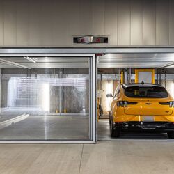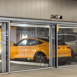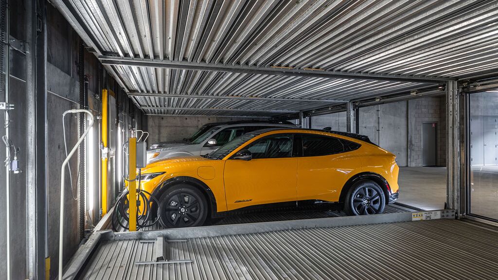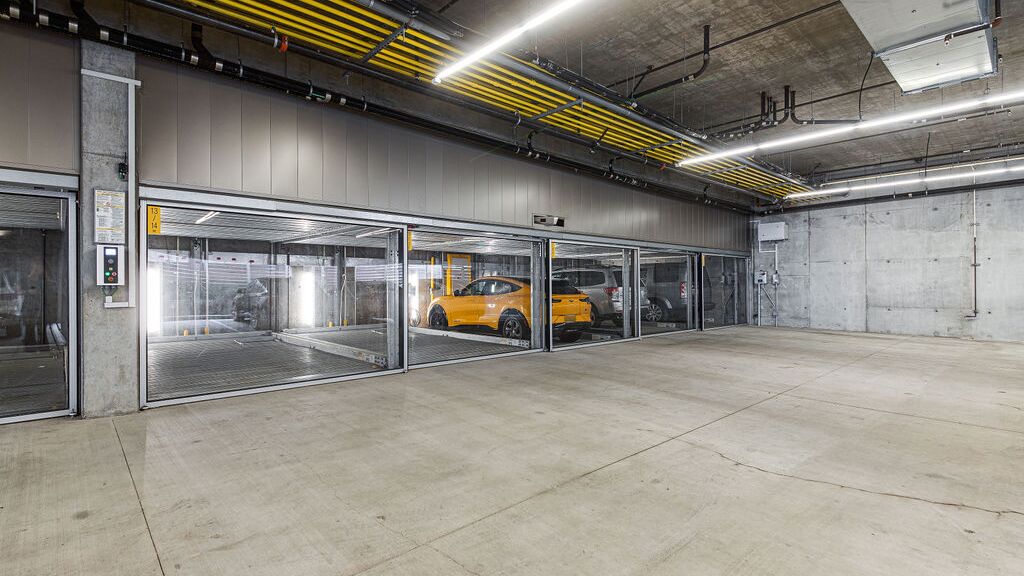 Eine weitere Besonderheit sind die integrierten Schiebetüren mit Glaseinlage, die ein luxuriöses Aussehen und Gefühl vermitteln. Der Bauherr hat bei der Verkleidung der Fassade über und um das System herum viel Liebe zum Detail walten lassen. Jeder Bewohner, der eine Plattform in der Garage erwirbt, kann sein halbautomatisches Parksystem mit der optionalen Smartphone-App sowie mit programmierten RFID-Chips bedienen. Innerhalb des Systems wurden auch Ladestationen für Elektrofahrzeuge installiert.