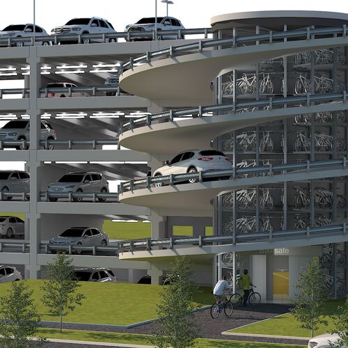 Our innovative bicycle parking solutions maximize space utilization and optimize parking space efficiently. One example of this is our Bikesafe, with a round design that allows it to integrate seamlessly into the spiral ramp of a parking garage, making optimal use of an otherwise unused area.