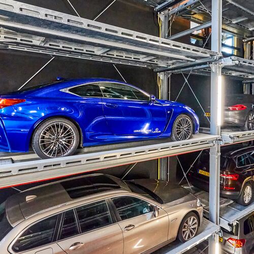 With our parking lifts, we double or triple the number of parking spaces in the available space. This is why they are often called duplex garages or double parkers. The parking lift rows with pit are for independent parking, the cars can be requested independently of each other at any time. Parking lifts without a pit are for dependent parking and are ideal for single-family homes or parking garages with valet parking.