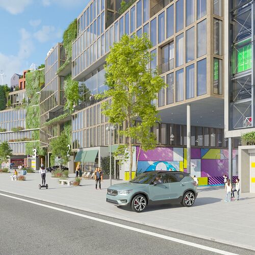 The neighborhood parking garage is an innovative solution for the efficient and sustainable use of parking space in urban areas. Instead of each apartment or each building having its own parking spaces, parking spaces are concentrated in central, shared parking parages. This creates more room for green areas, homes, and livable urban areas.