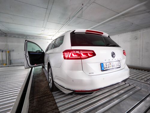 Together with the architectural practice 6H in Stuttgart, a semi-automatic WÖHR parking system with a total of 143 car parking spaces was implemented for the “Townhouse at the Neckarbogen”. “Our Combilift 542 Komfort system optimises the principle of stacking and moving cars closer together. This drastically reduces the floor space required, with more convenience for the driver”, according to Hirt. The system, which has already proven itself with numerous parking solutions all over the world, provides the residents with a permanently allocated, horizontally accessible parking space. Separated by theft-proof paled gates, the vehicles are manoeuvred on two levels in such a way that the relevant parking space is quickly available for entering or exiting. The request is made either via RFID chip, a radio remote control, or with the Smart Parking App developed by WÖHR. The main advantage of the Combilift compared to conventional park lift systems, apart from the increased headroom, is above all the more convenient entry and exit on horizontal platforms. In addition, there is the low installation height of only 220 cm, which still enables SUVs to park on both levels. “Using a universal vertical column, each Combilift parking place can be retrospectively fitted on-site with a charging station for electric vehicles. This provides optimal flexibility for current and future mobility solutions” Johannes Hirt is pleased to say. “Of course, the WÖHR Combilift 542 can be modified as required. Four product variants are available for different vehicle sizes, and modules with 3 to 19 parking spaces can be implemented.”