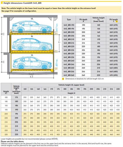 - High user-friendliness and parking comfort. All new Combilifts are extremely flexible as we can create a new height every 5 cm to park vehicles from 150 cm to 220 cm high.