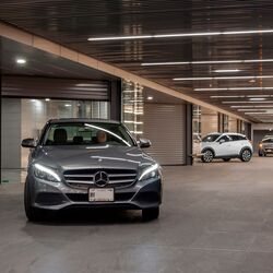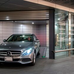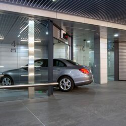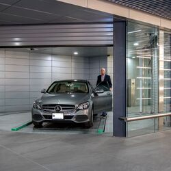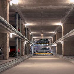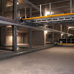 The turntable manoeuvres and transports the car from the first to one of the twelve underground levels where it is parked. In 15 seconds, everything is over and your own car is in a kind of safe that no one else can reach.