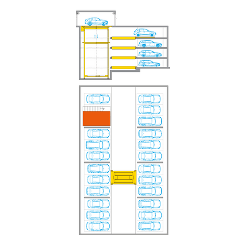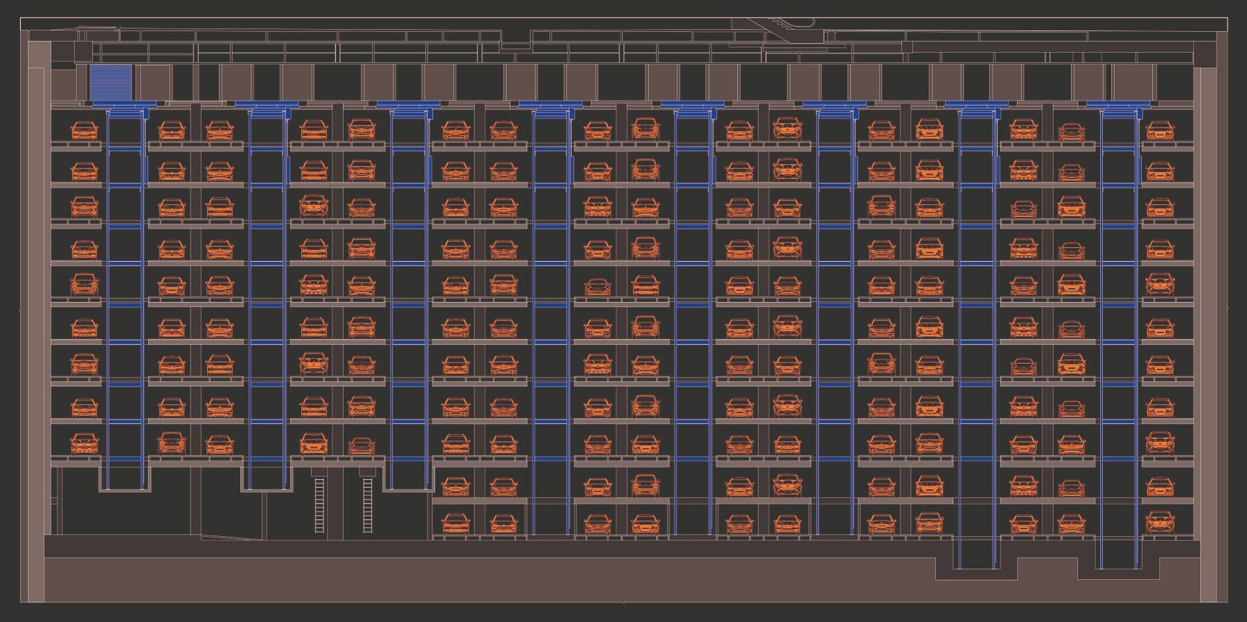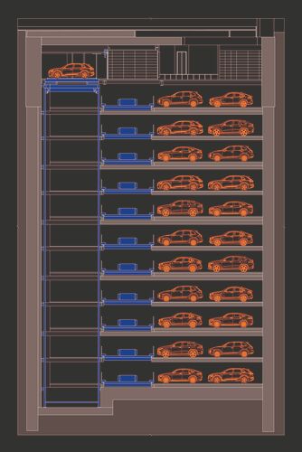 There is space for 80 vehicles per level. There is constant movement. WÖHR has opted for a "chaotic system".