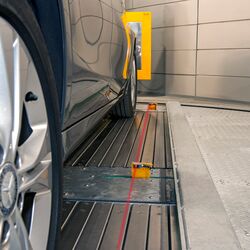 The intelligent, fully automatic parking system is an in-house development by WÖHR, both in terms of hardware and software. Several thousand sensors form the core of the system. They help to safely move the vehicles onto a kind of conveyor belt, from which they are transported to the assigned parking box. Those who want to collect their car from the underground car park hold the tag with integrated chip up to a display in the waiting lobby. In a maximum of three minutes, the vehicle is ready - thanks to the integrated turntable in the direction of the exit.