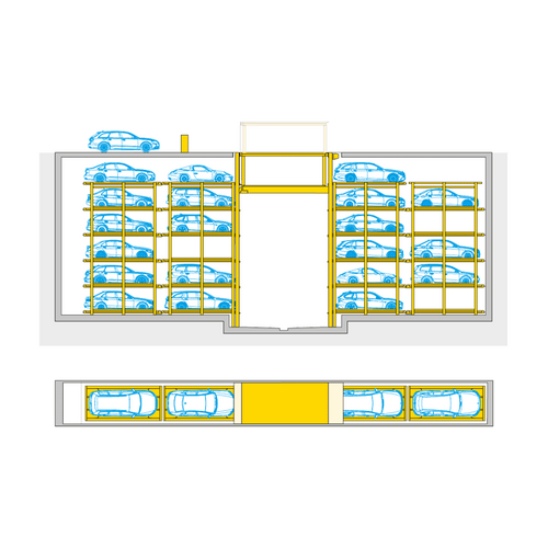 When there is more space in length than in width, the Slimparker 557 shows off its merits. This slim system merely requires an installation width of 2.60 metres in narrow broad strips between buildings. The Crossparker 558 offers an extension to the Slimparker 557 as far as width is concerned.