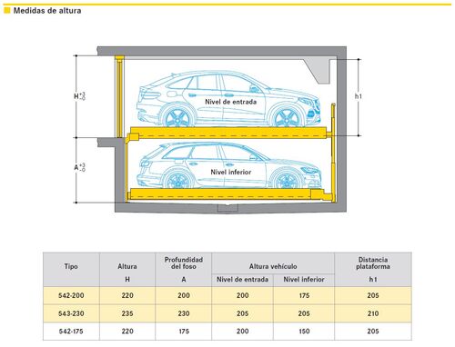 - Permite estacionar SUV en plazas superiores con una altura restringida a 220 cm.