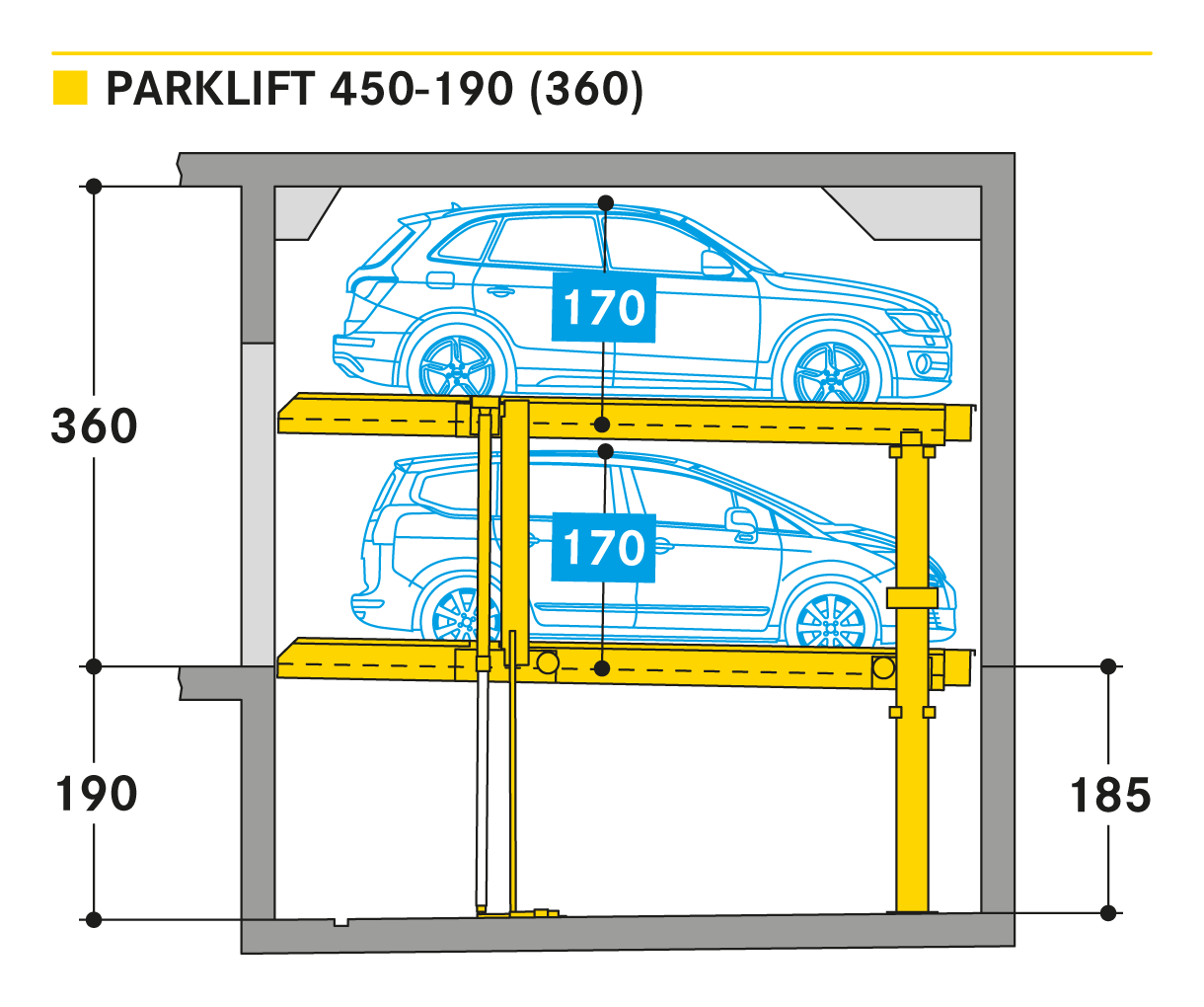 El Parklift 450 reemplaza a su predecesor, el Parklift 440. Las ventajas del nuevo desarrollo son sus reducidas medidas de montaje con las mismas dimensiones de coche.