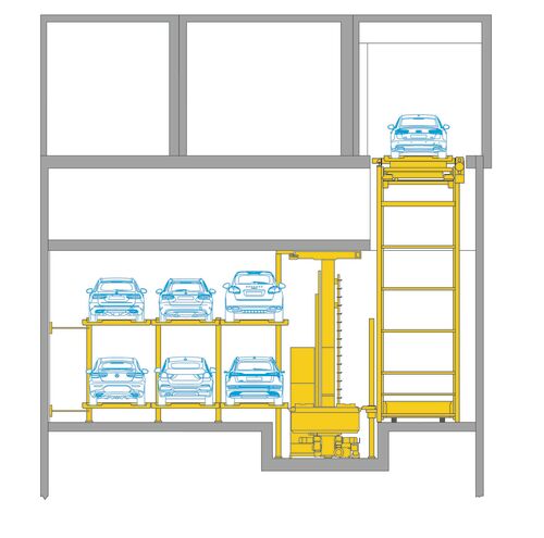 Au centre de Madrid, un Multiparker 740 WÖHR entièrement automatique contribue à la réduction de l'empreinte écologique de l'immeuble Montalbán 11.